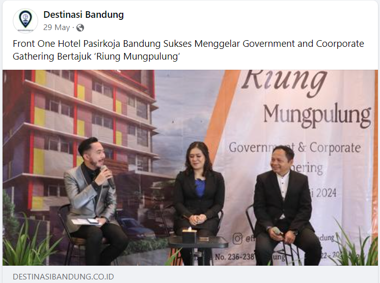 Silaturahmi antara Front One Hotel Pasirkoja Bandung dengan para customernya tersebut dikemas dalam acara “Riung Mungpulung Government and Corporate Gathering” yang diselenggarakan di Harmoni Ballroom Front One Hotel Pasirkoja Bandung, Jl. Peta No. 236 Kota Bandung ,